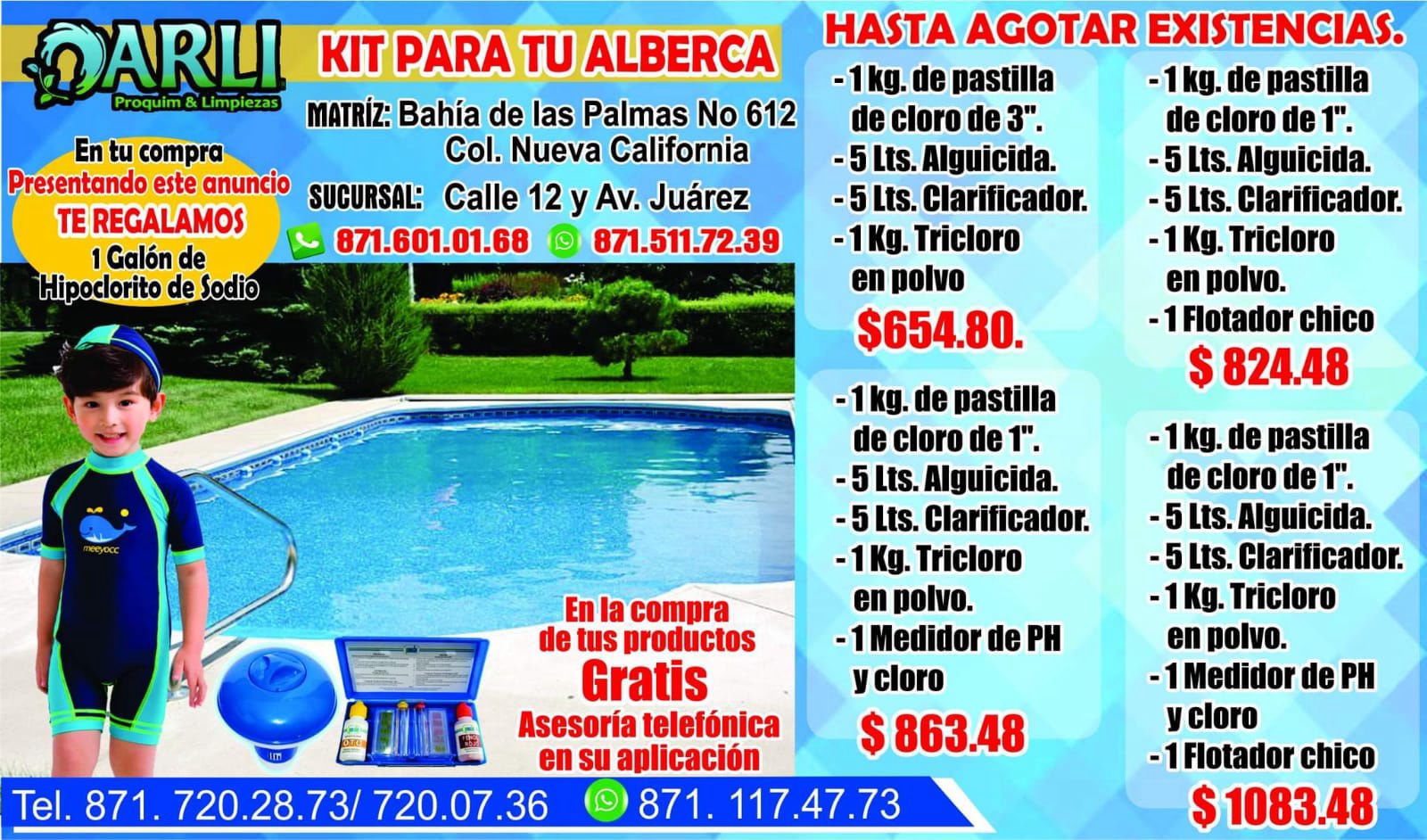 BONO: Con tu compra al presentar este anuncio te llevas de regalo 1 galón de Hipoclorito de Sodio, mismo que te servirá para desinfección de tu piscina.